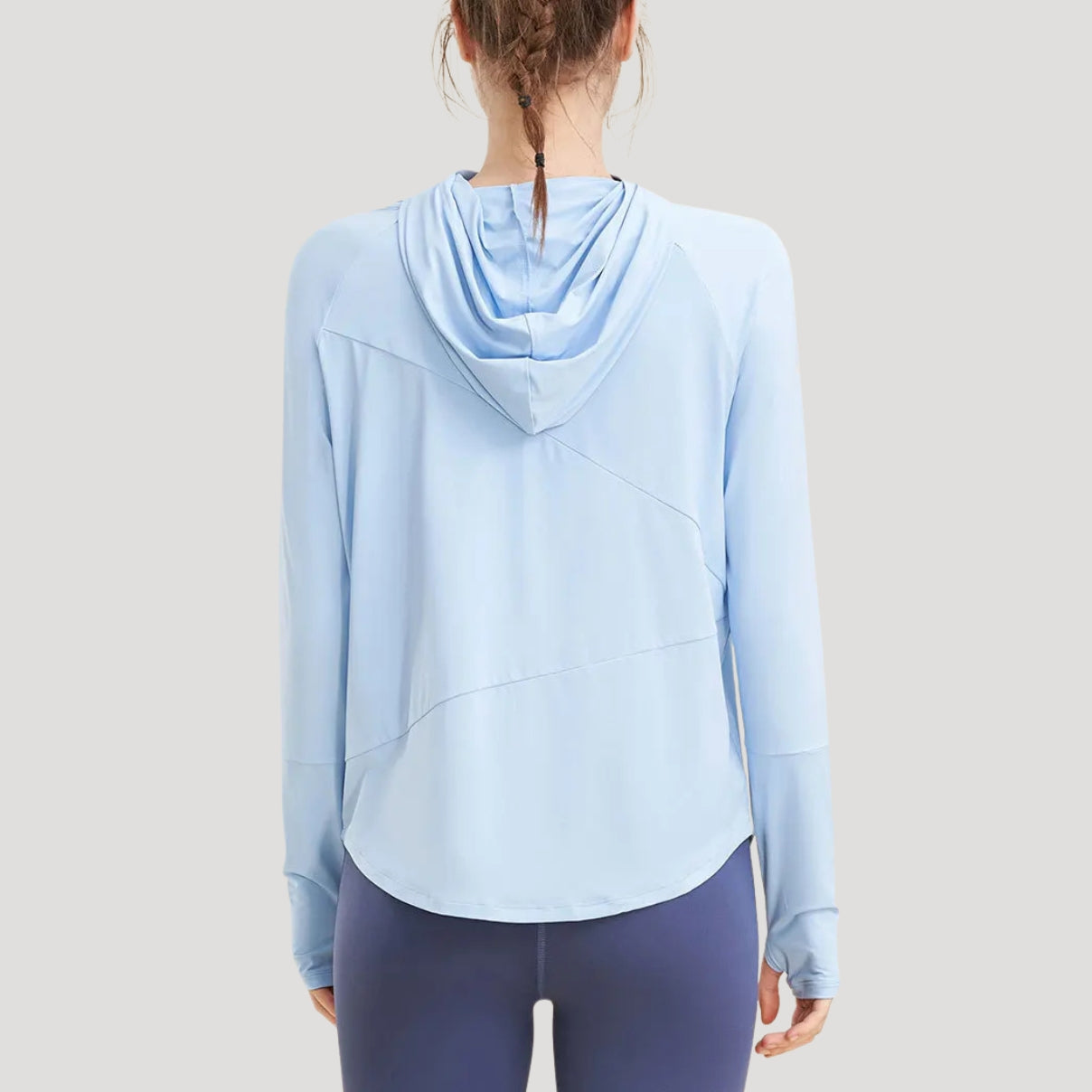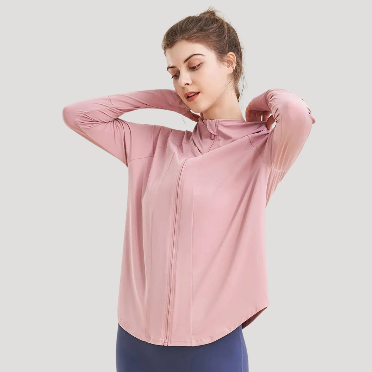 This Women’s Long Sleeve Loose Breathable Zipper Hooded Sports Top is the perfect combination of style, comfort, and performance. Designed for active women. Stay cool and protected with this Women’s Long Sleeve Zipper Hooded Sports Top.