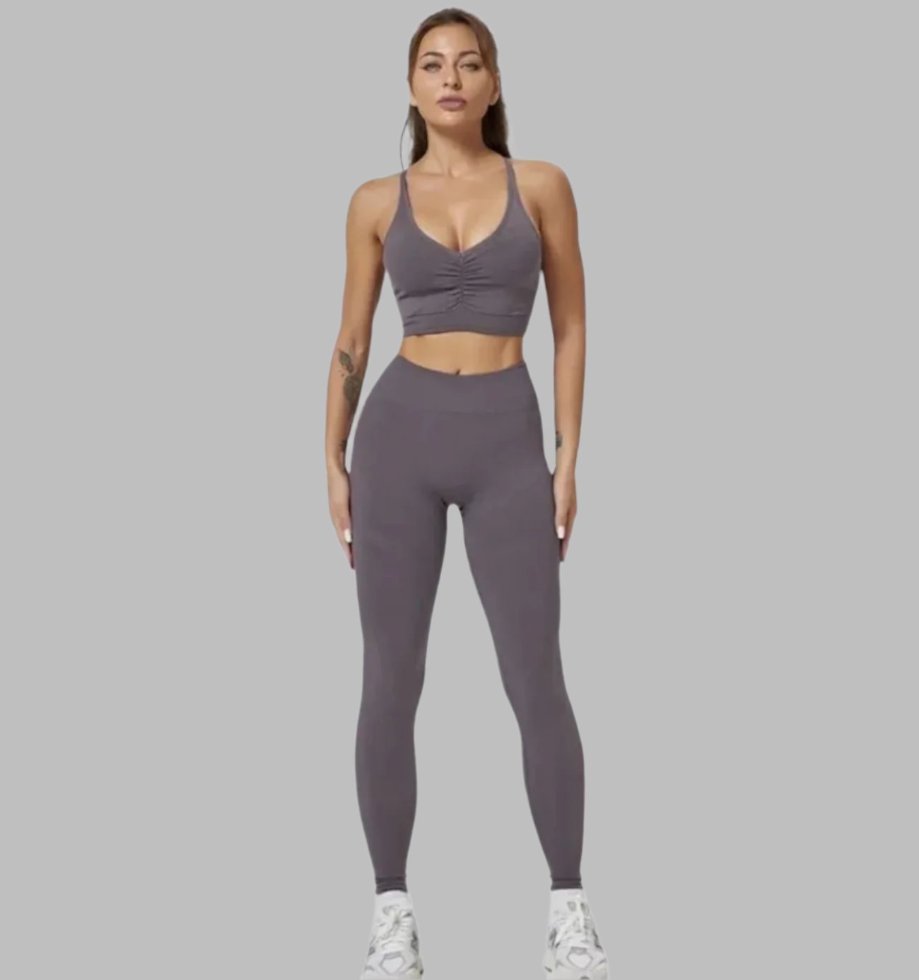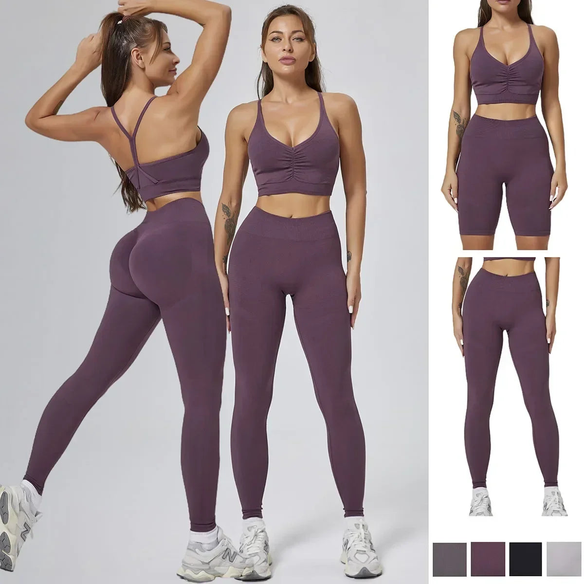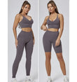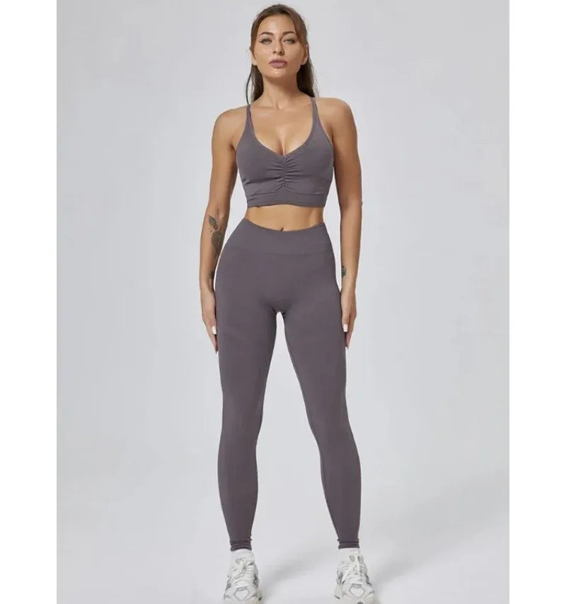Elevate your workouts with our Seamless Yoga Set! Featuring high-waisted, peach hip-lifting leggings, matching shorts, and a supportive bra, this gym set is designed for comfort, style, and performance. Perfect for yoga, gym sessions, or lounging in confidence!